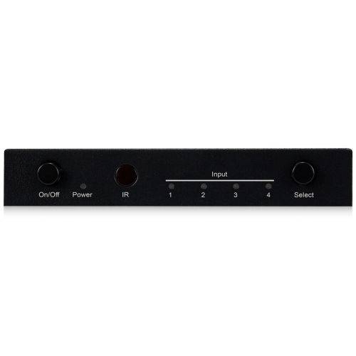 • IR receiver on front panel to switch inputs and turn on / off audio outputs using supplied IR remote